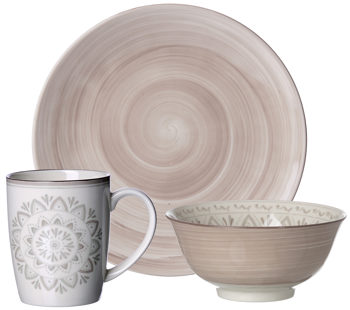 beiges Porzellan - 12-teilig, Brunchset