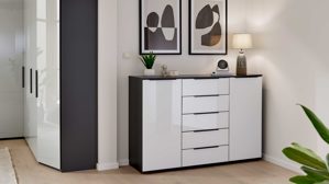Graphit & Eiche Bianco - eine Tür, fünf Schubladen, Breite ca. 120 cm